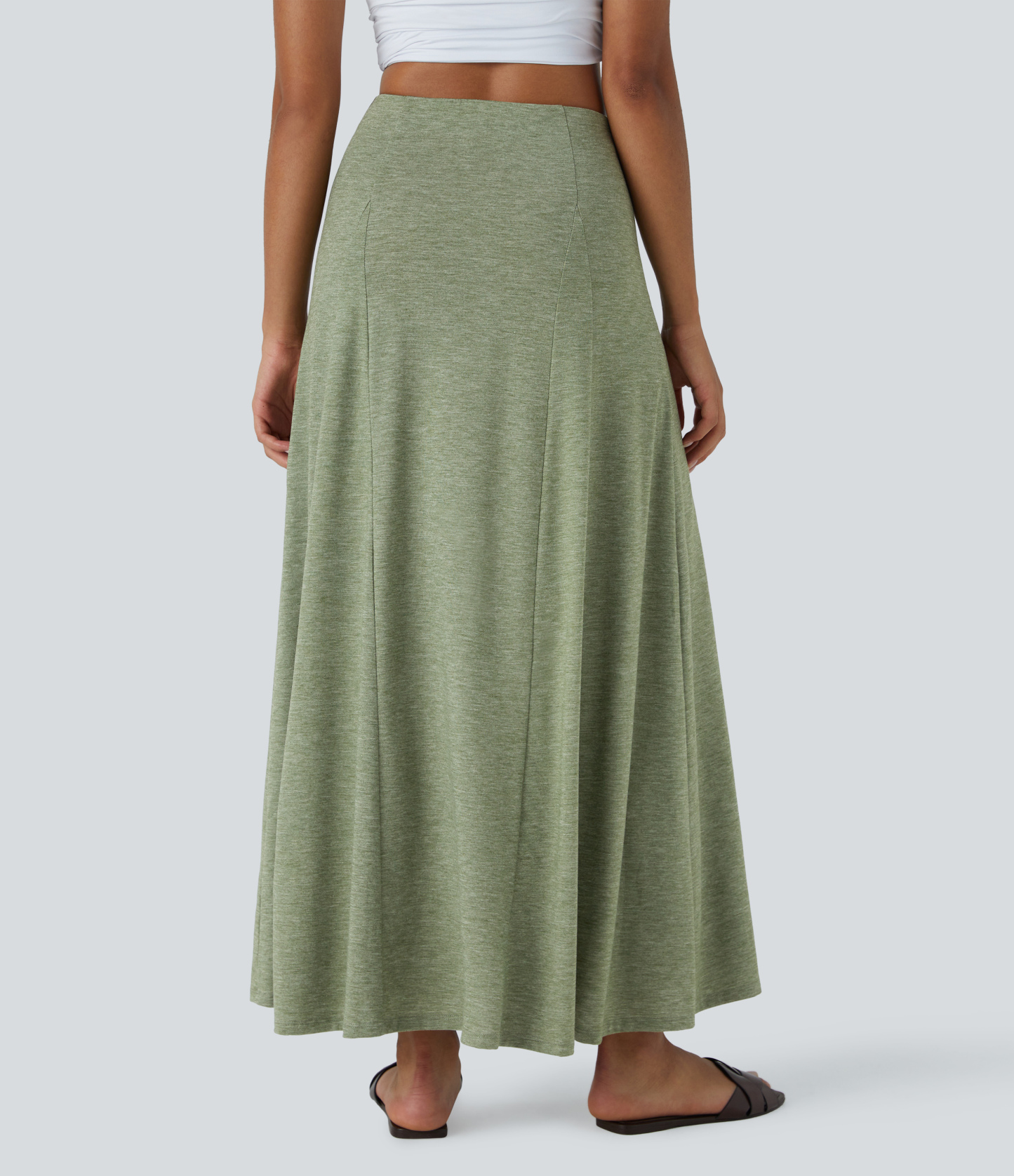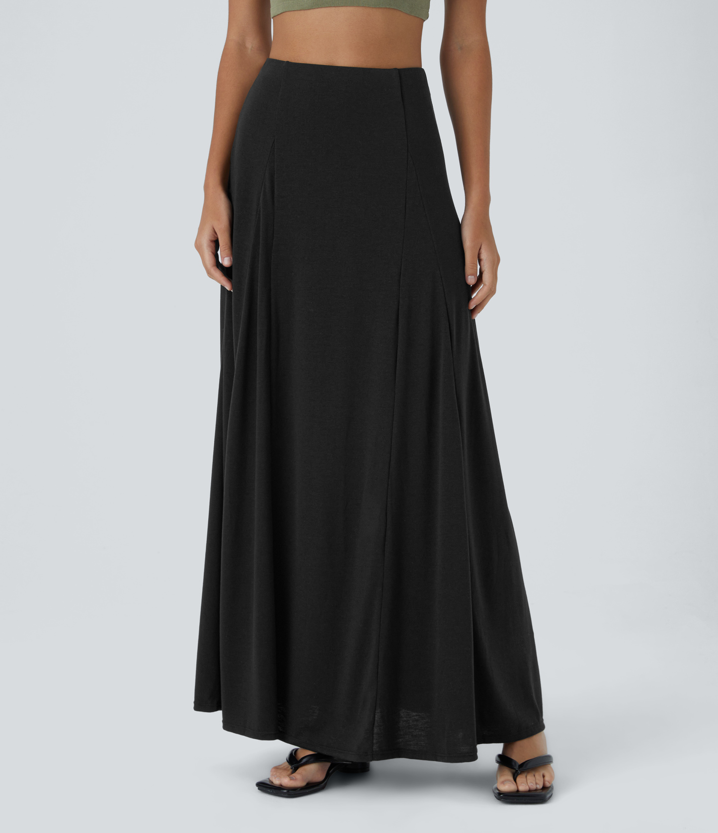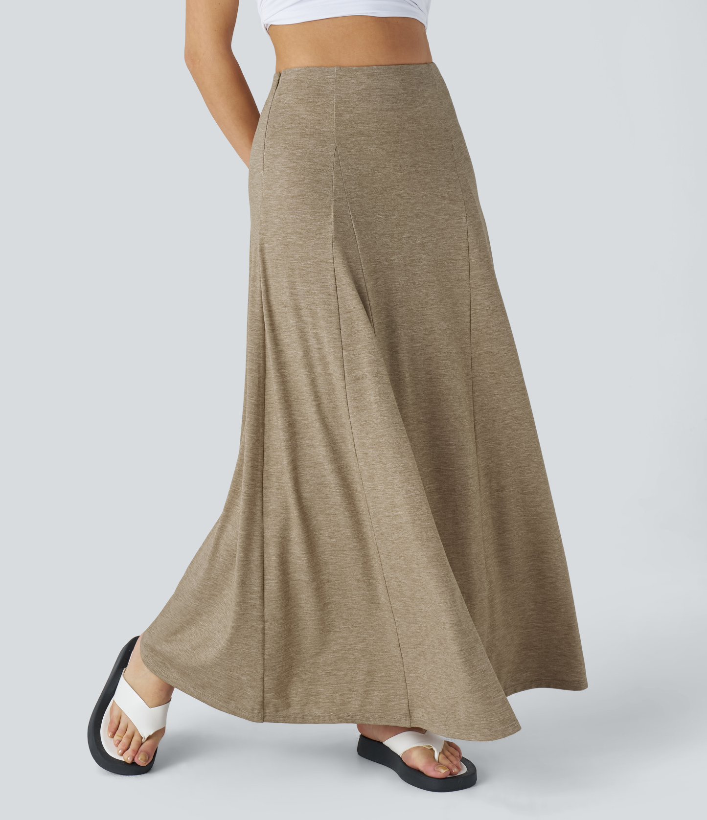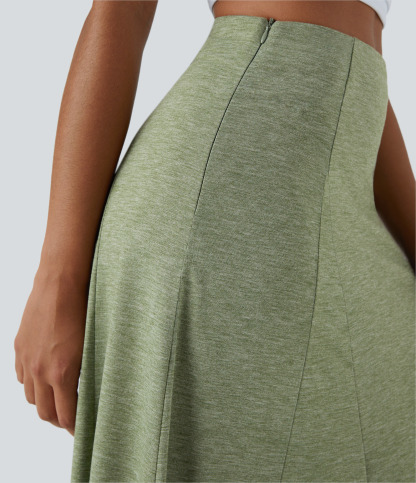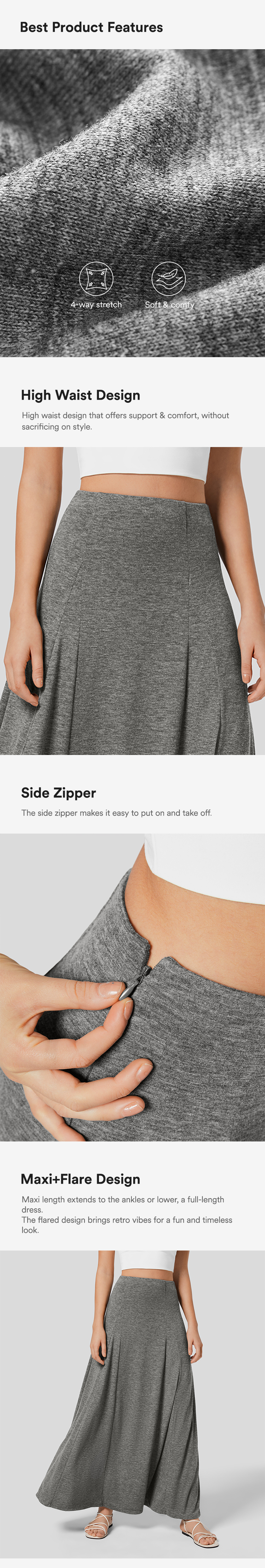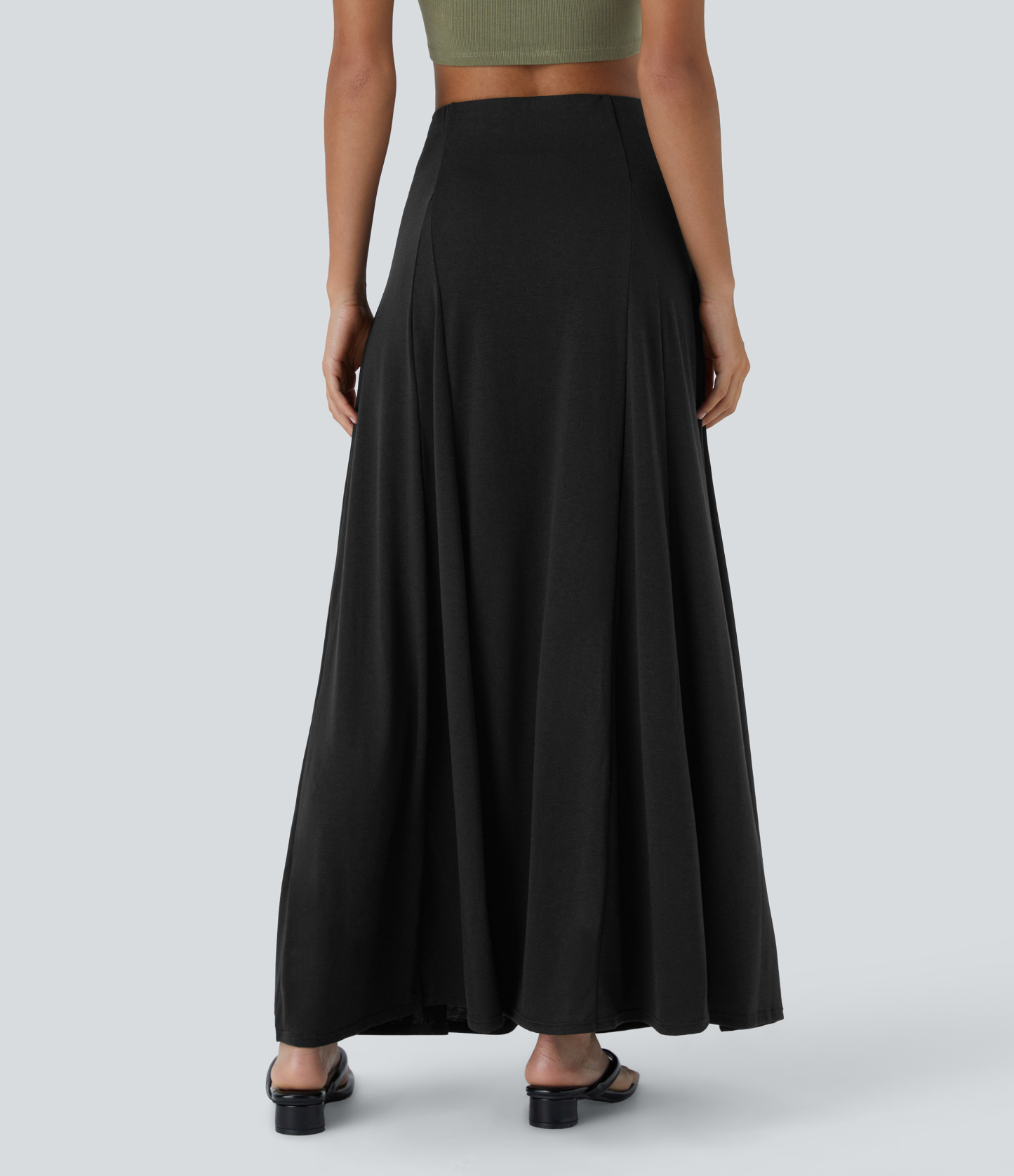 High Waisted Side Zipper Maxi Casual Flare Skirt