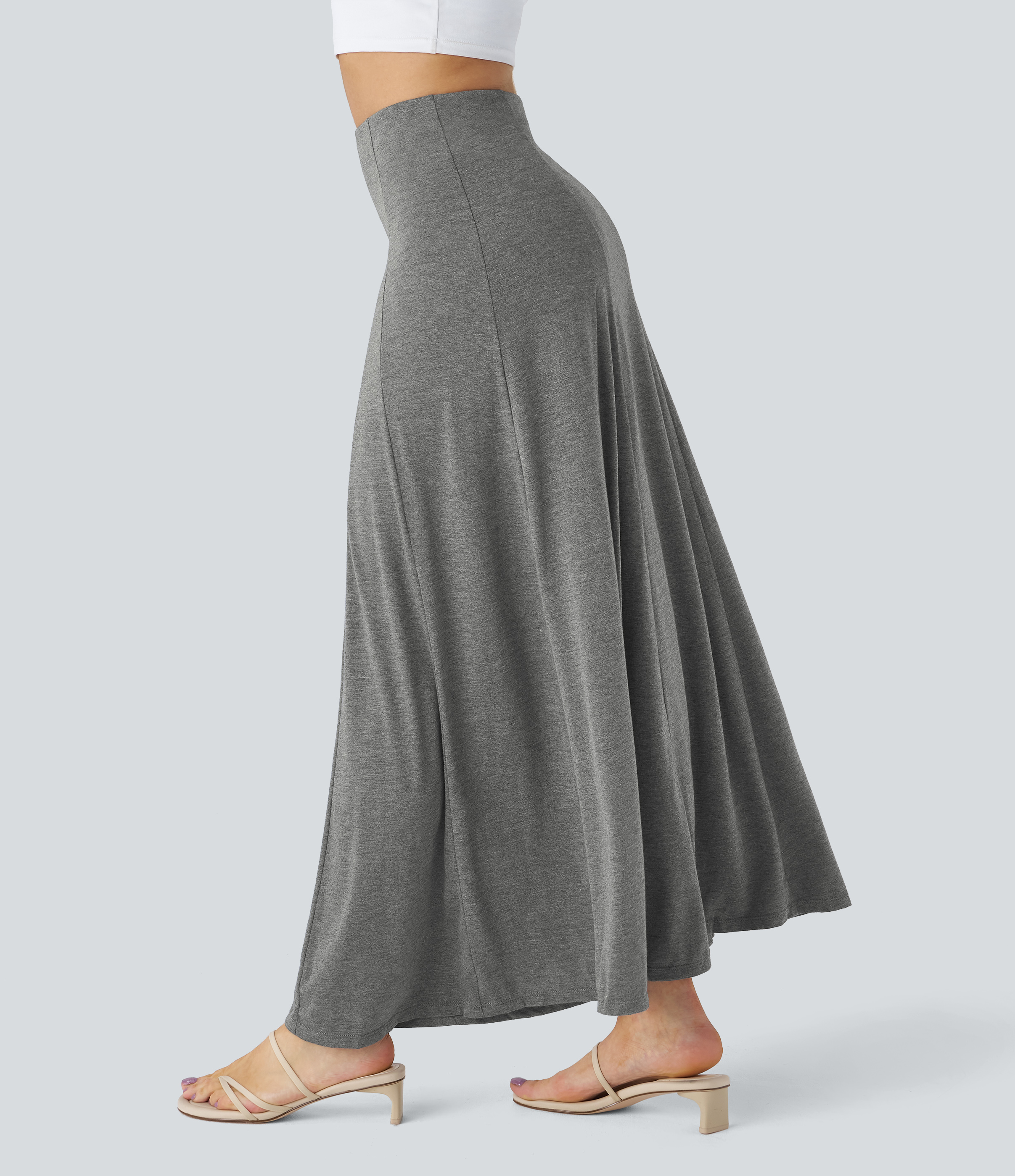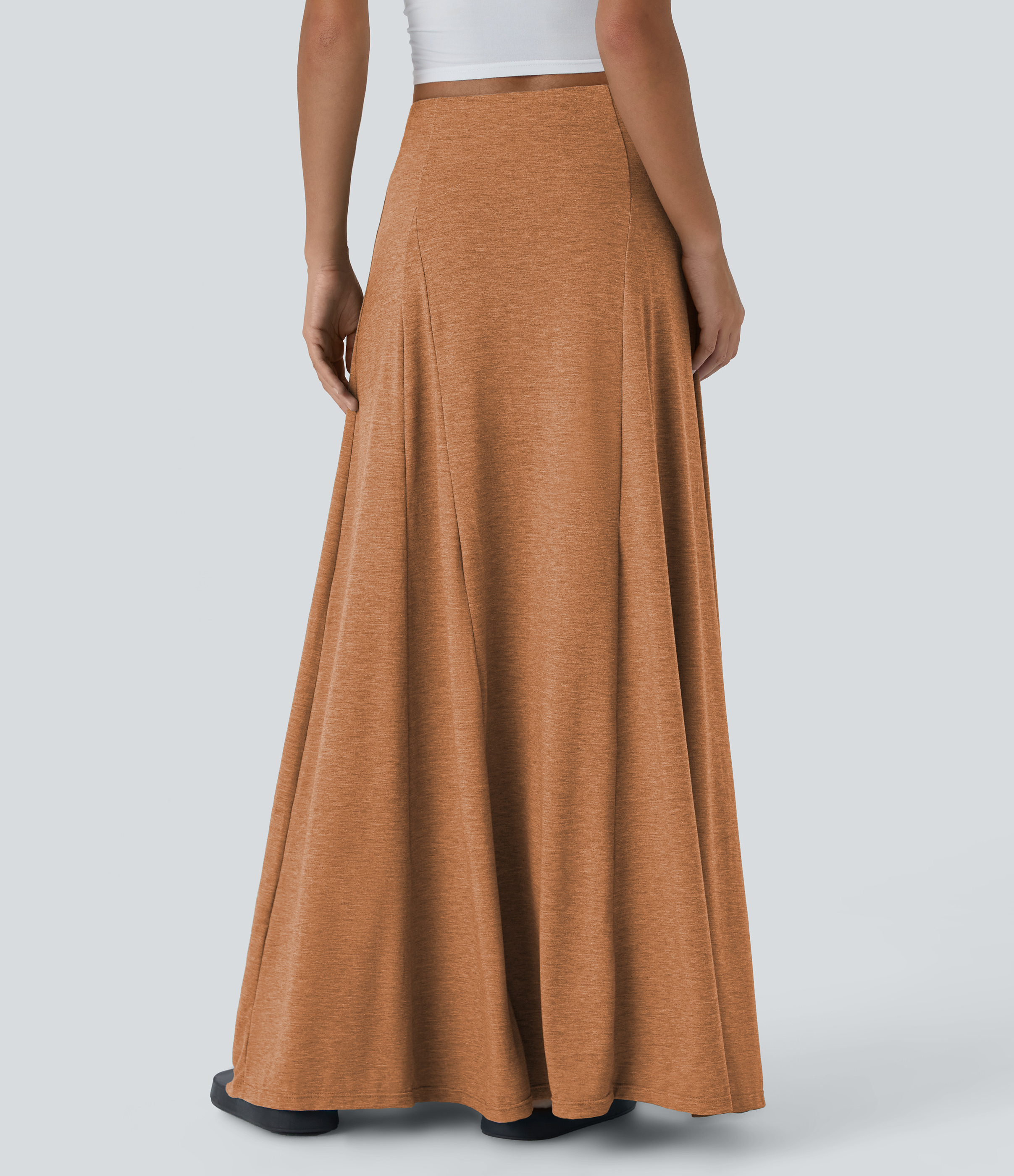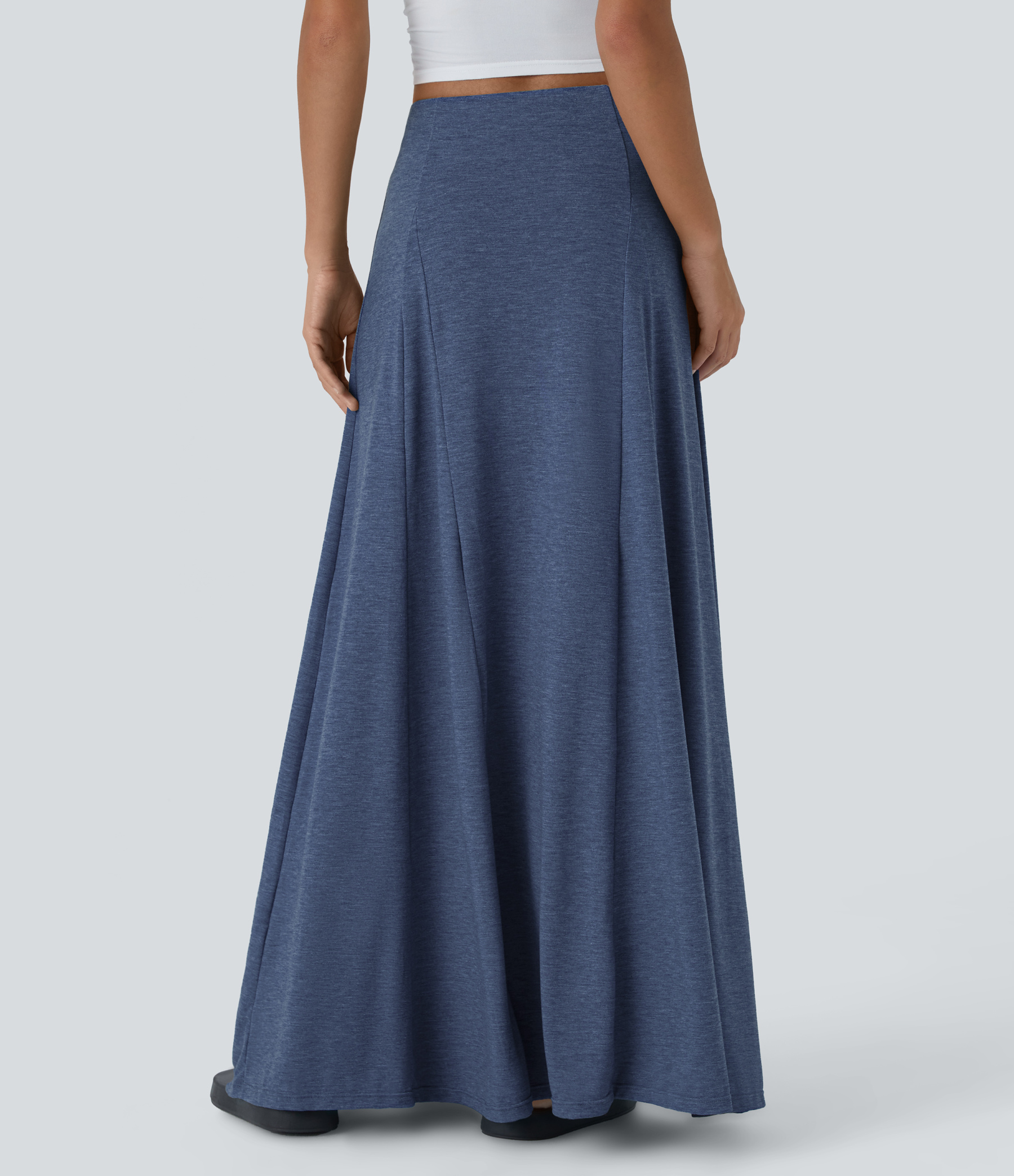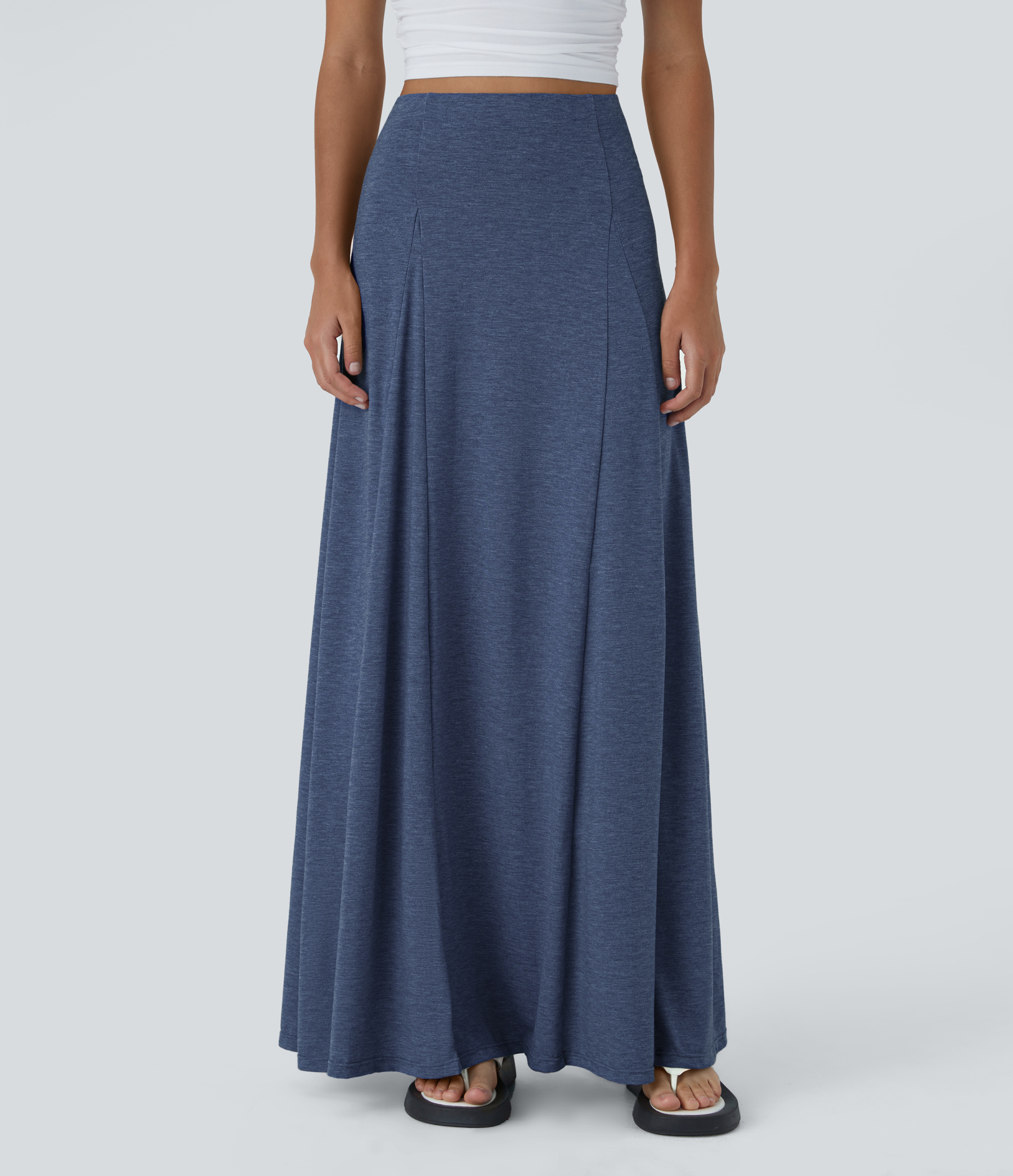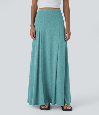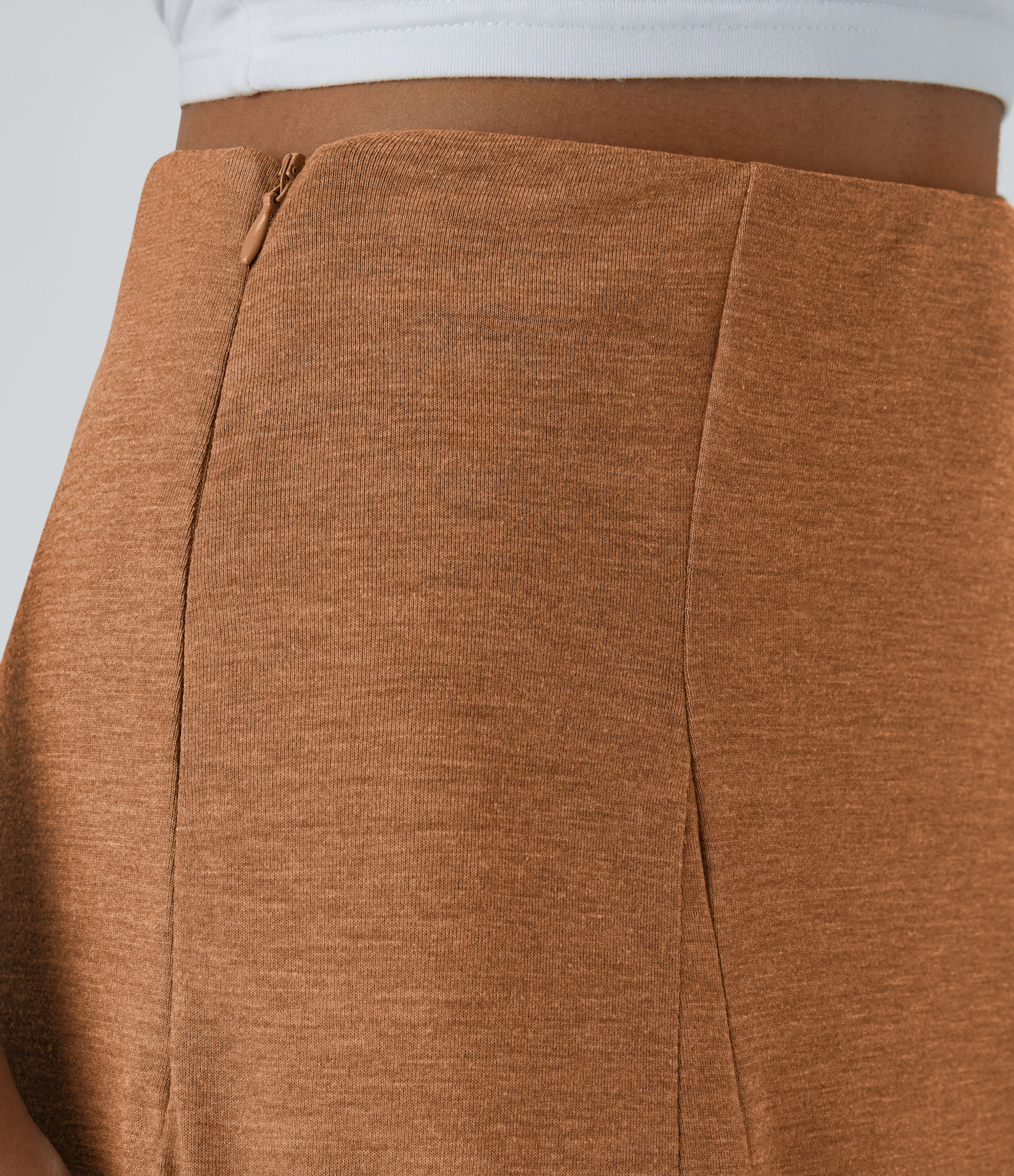 High Waisted Side Zipper Maxi Casual Flare Skirt