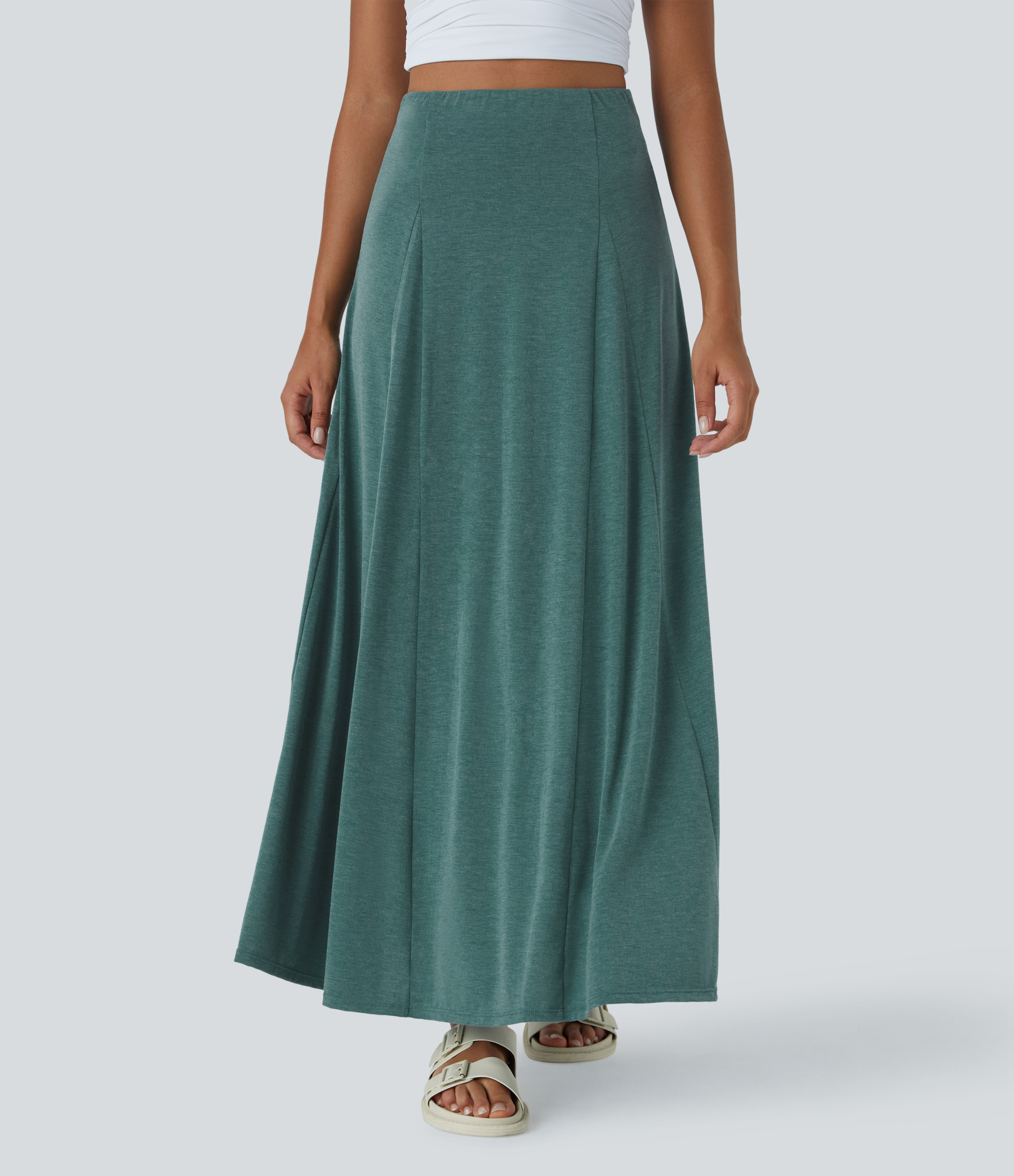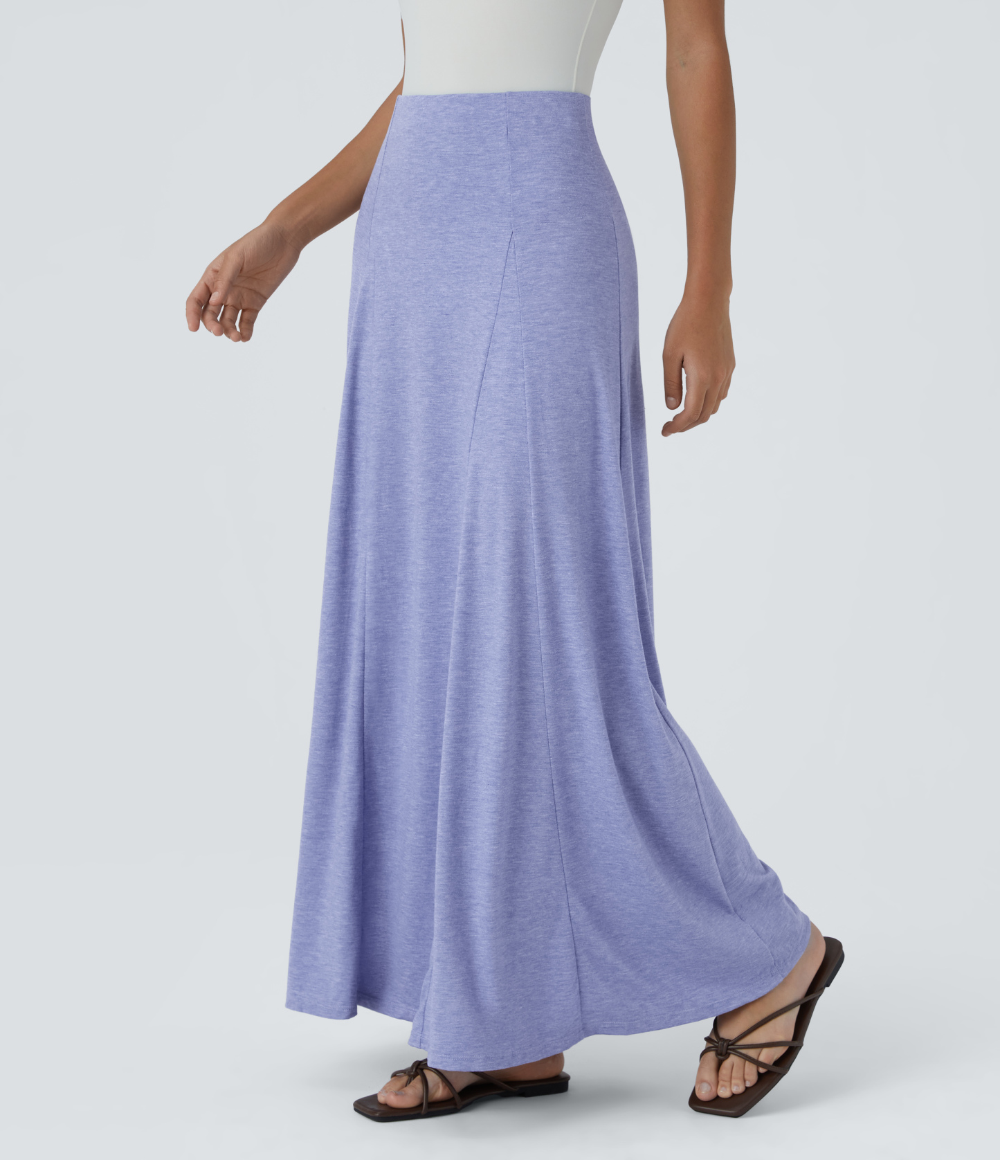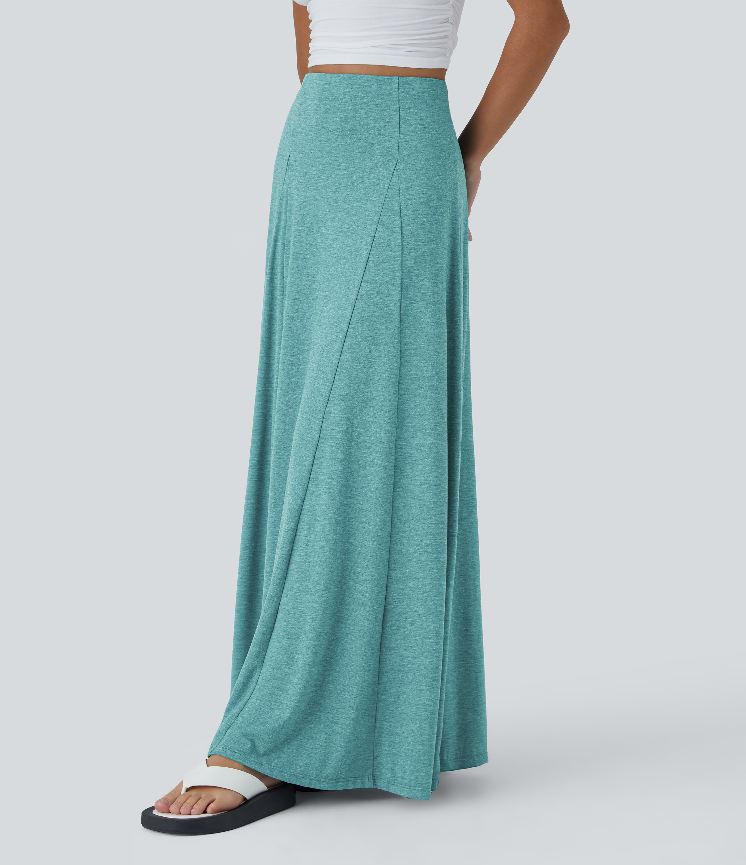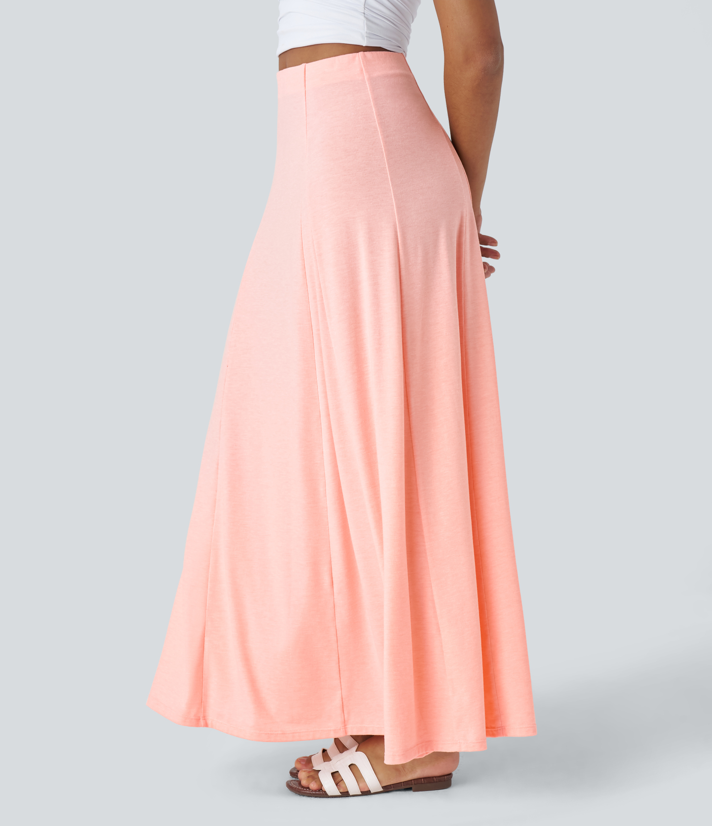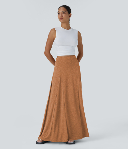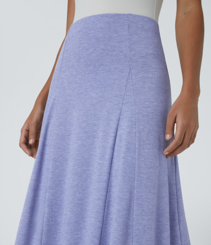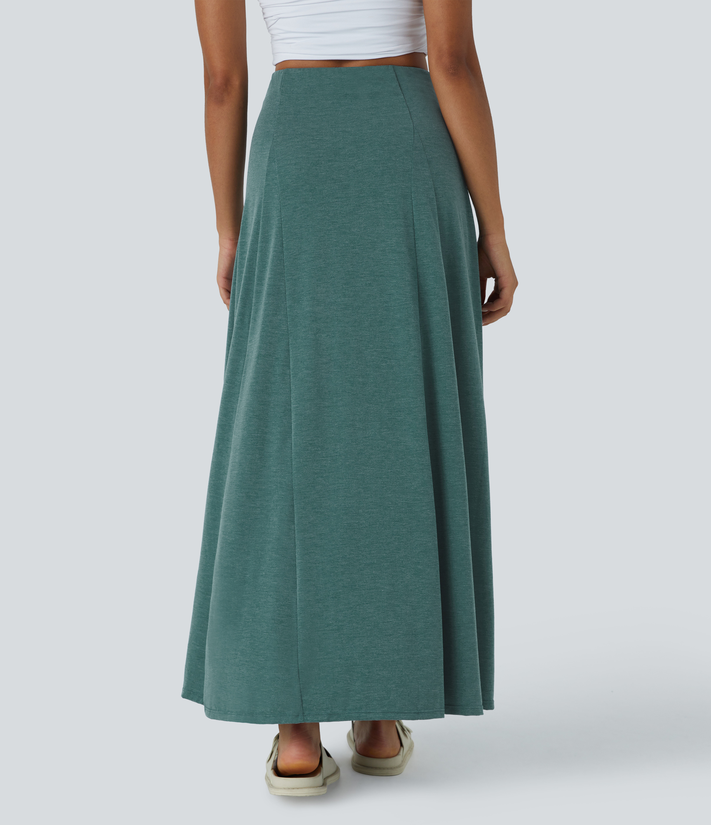 High Waisted Side Zipper Maxi Casual Flare Skirt