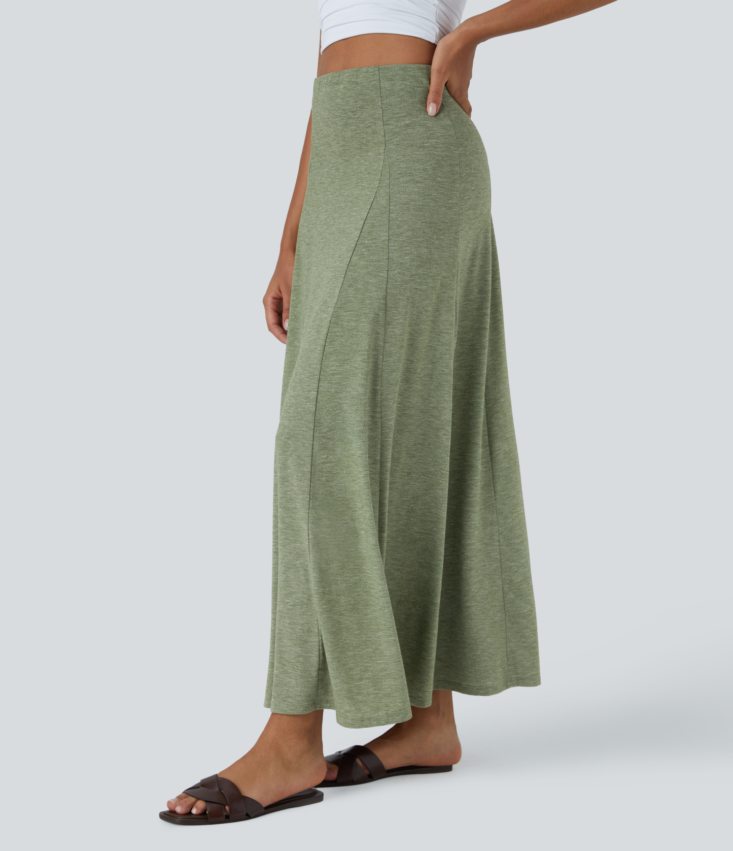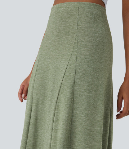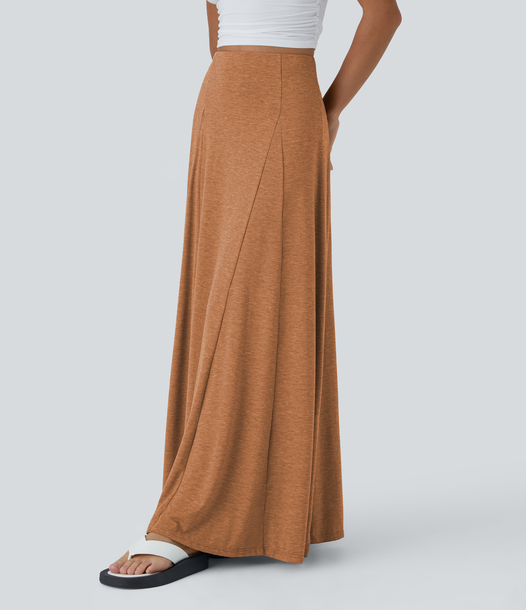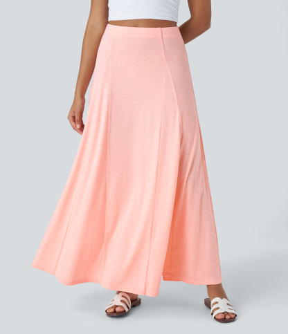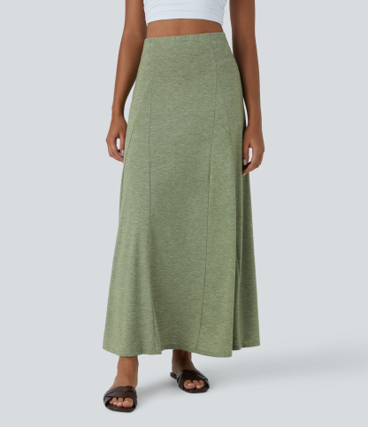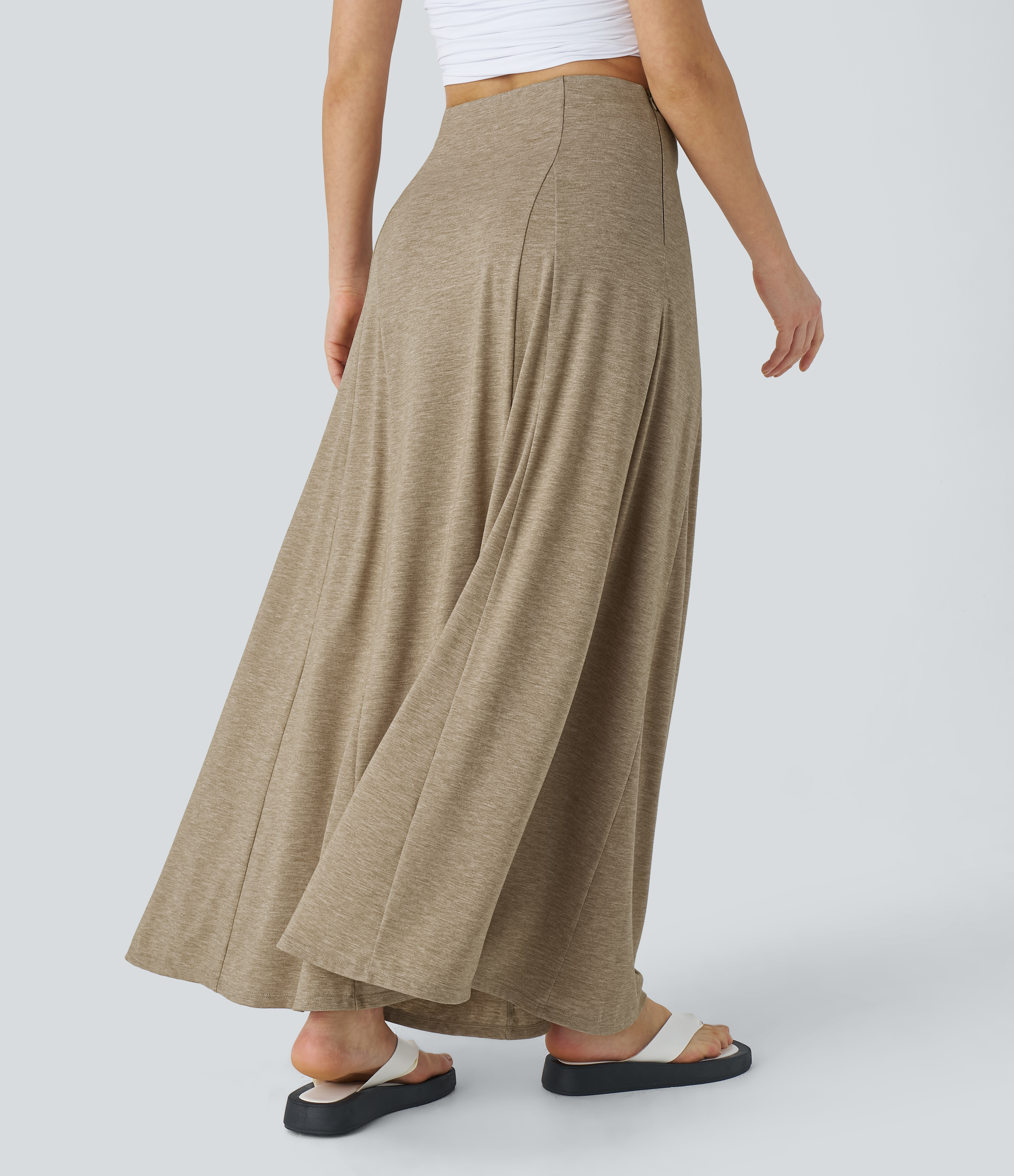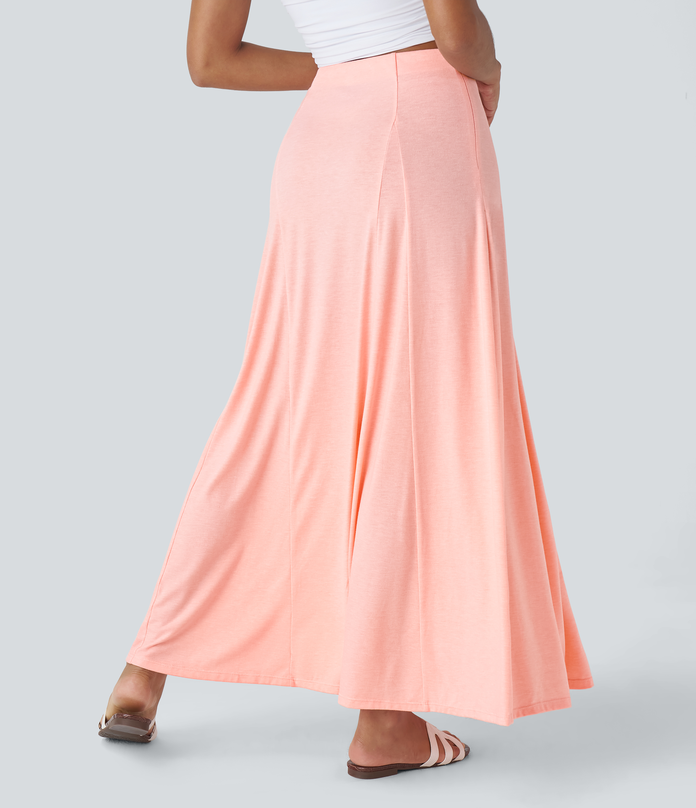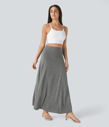 High Waisted Side Zipper Maxi Casual Flare Skirt