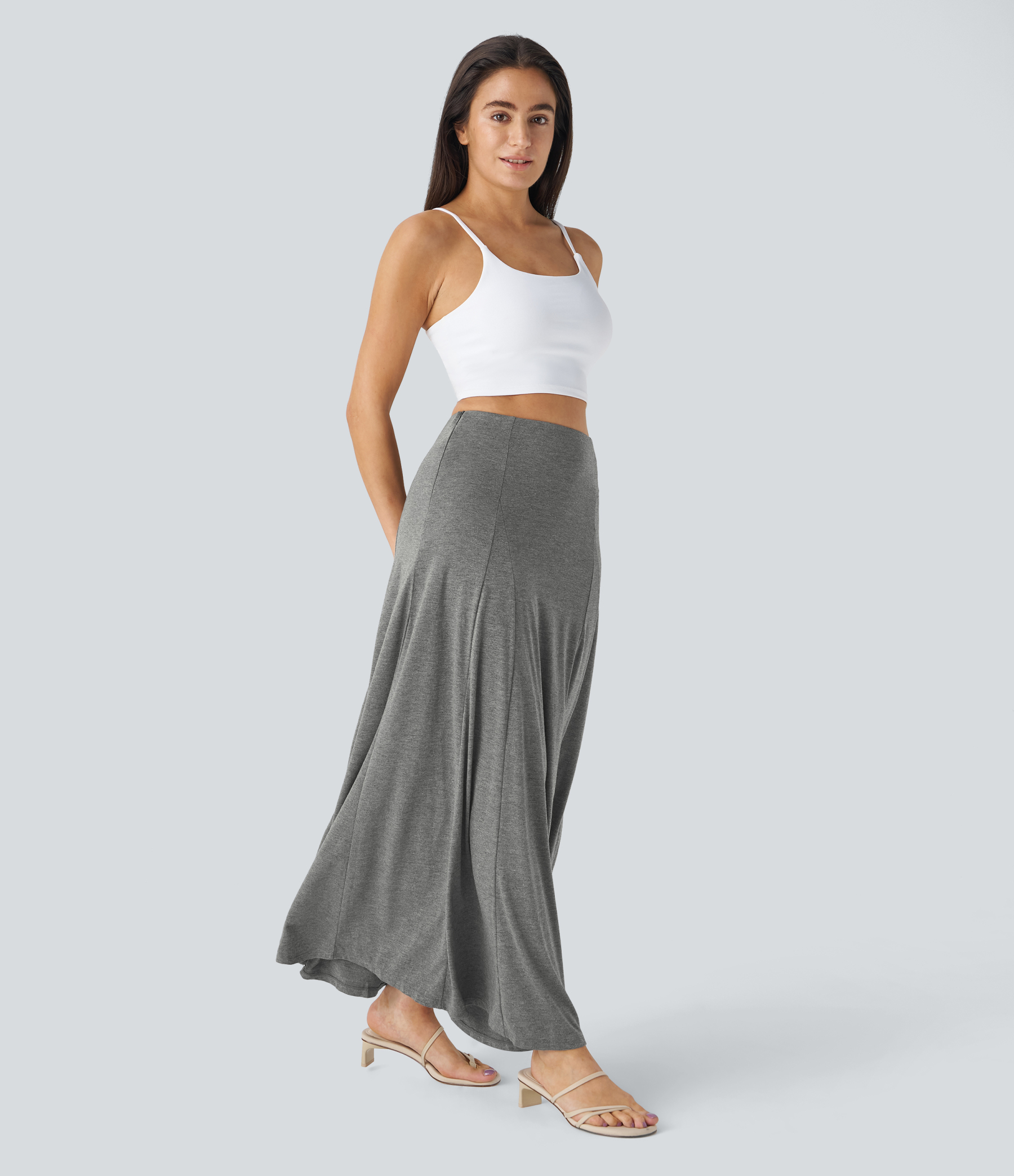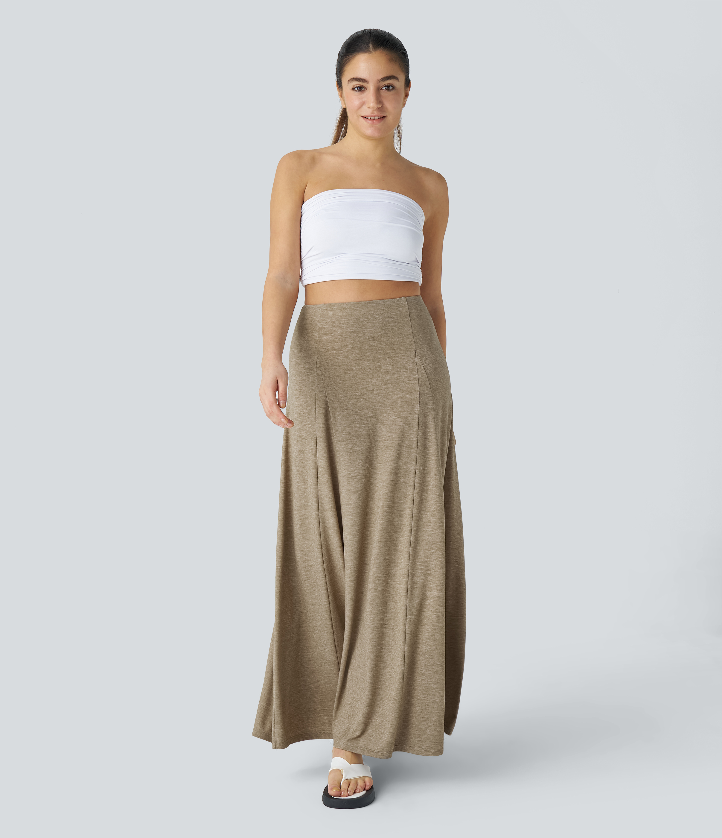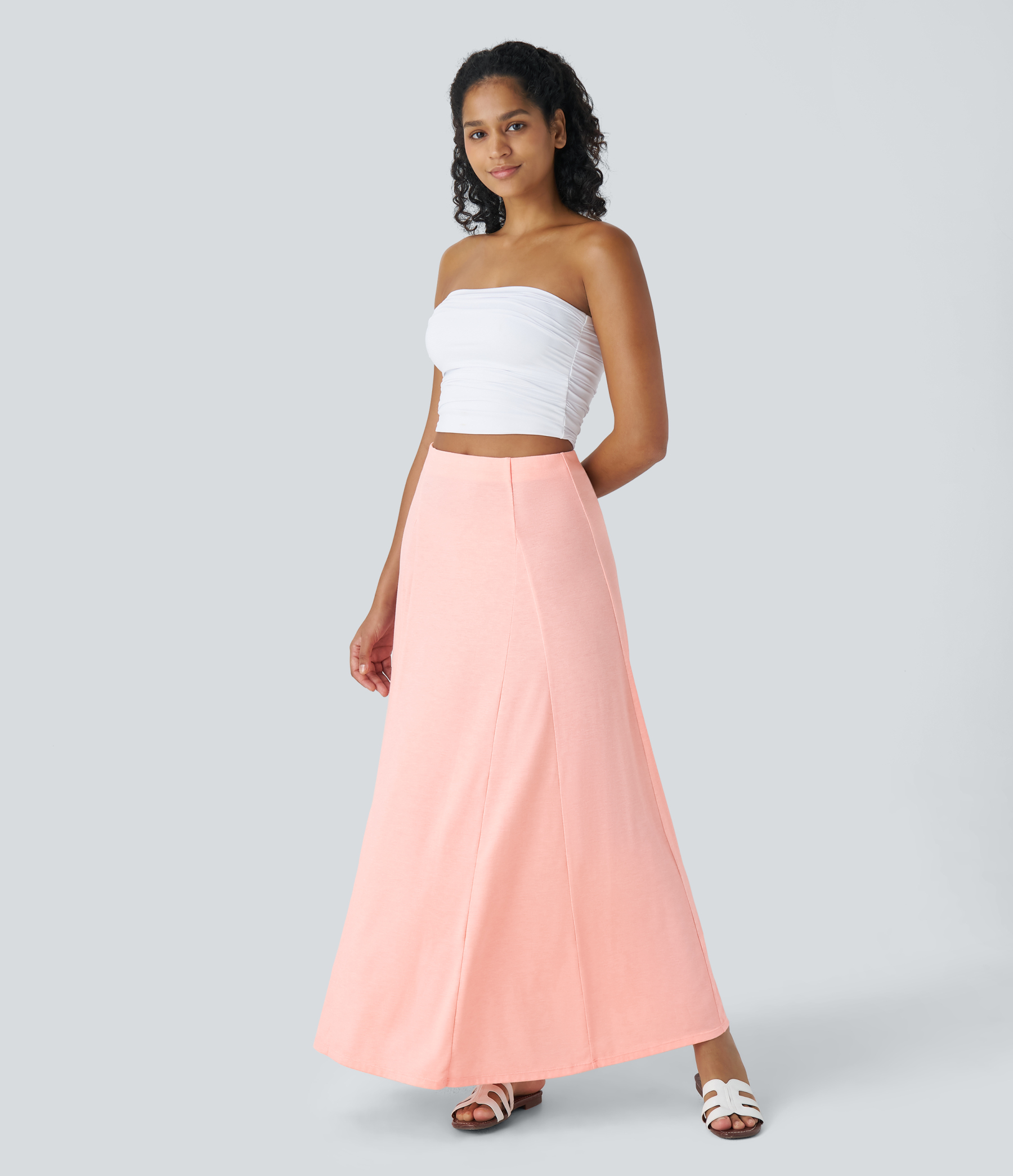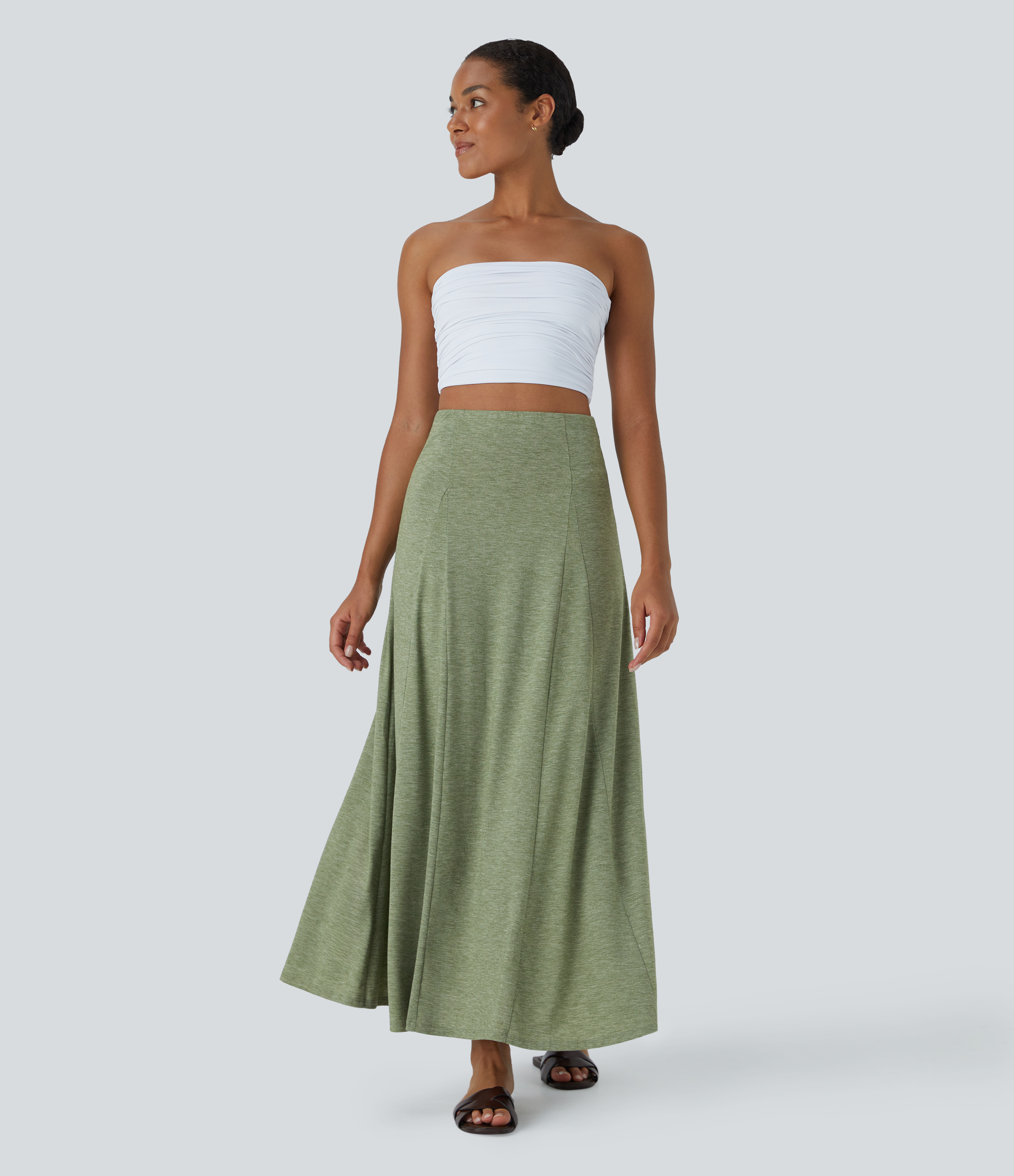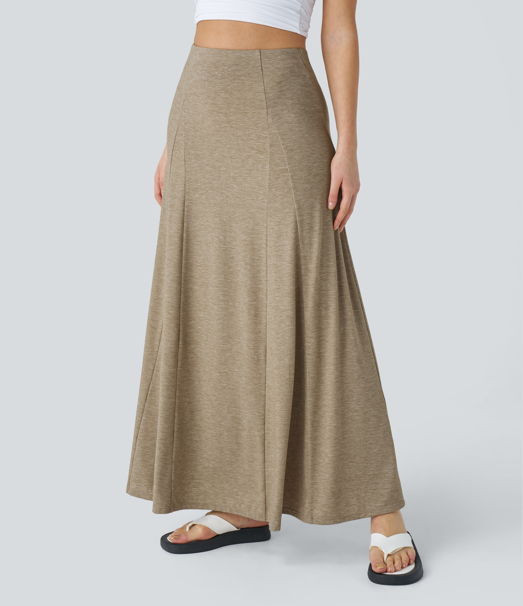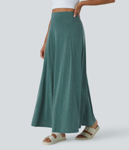 High Waisted Side Zipper Maxi Casual Flare Skirt